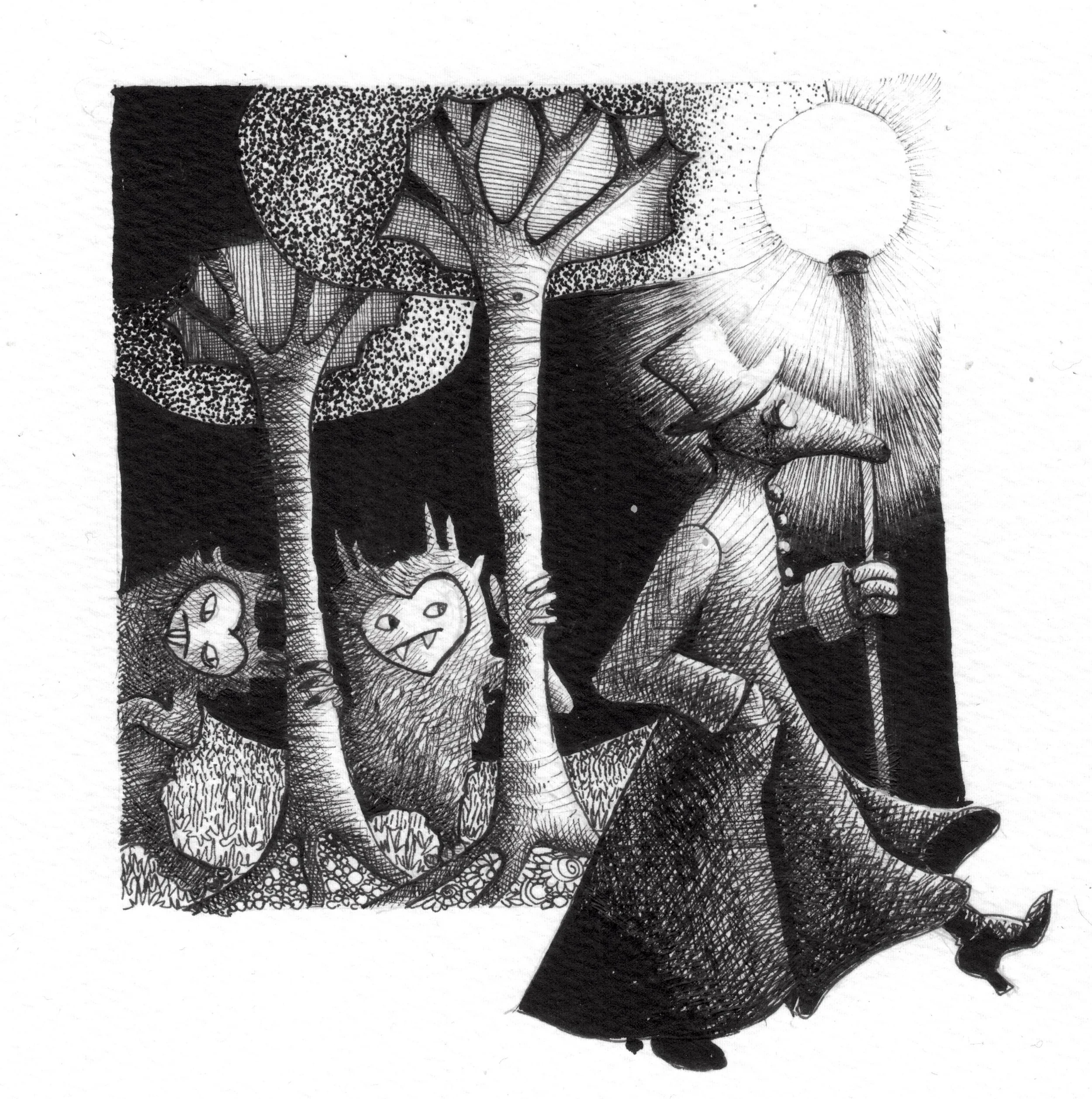 Sophie Jonas-Hill is a pen and ink artist, who is such a luddite that she rarely uses digital, let alone Ai. Unlike Captain Lud, she is not fictional and can be found in her Kent Hobbit hole creating her intense drawings by hand, until some kind person interrupts her with a cup of tea. Her work is heavily inspired by folk tale, myth and legend, with a healthy sprinkle of alternative and queer culture, is behind the creation of her ‘Wild, Wide, Woods’ - a moonlit forest world inhabited by demons, sprites, wraiths, nixes and more, all of whom are as silly and flawed and argumentative as the little band of humans they occasionally run up against. The initial idea for the illustrations came from those dark days between Christmas and New Year, when the English countryside seems sleeping and you can believe again that the veil between the worlds has thinned, and where mummers are abroad, with the 'Hodan 'oss', the Kentish form of the costumed character built around a horse skull, with its fixed grin and dark eyes. When not lost in the woods, she can be found designing brilliantly coloured jigsaws for Ravensburger, darkly gothic tee-shirts for HMV, illustrations and covers for books, and one-off commissions. She is also a published author, teaches silversmithing, writing and arty stuff Via Kent Adult Education, and is an avid audio book listener. She’s always open to chatting over your ideas and is really nice to work with! You can find out more about her work, buy both originals and prints and contact her through her website at www.sophiejonashill.com at her IG @SophieJonasHill and in her online shop at https://thebritishcrafthouse.co.uk/shop/sophiejonashill/